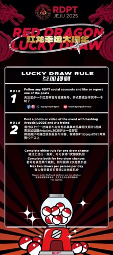2025红龙杯抽奖活动:赢主赛门票 & 豪华周边! **???? 活动时间:** 2025年5月3日 & 5月7日(两轮抽奖) **???? 大奖内容:** - **主赛门票(价值250万韩元)** - **卫星赛门票** - **红龙限量周边(帽衫、T恤、充电宝等)** 如何参与? 方式1:关注+互动(1次抽奖机会) ✅ 关注红龙杯任一官方账号,并点赞或分享一篇帖子 ???? 官方账号: - FB/IG/X: **@playreddragon - YouTube: **@reddragonpokertour 方式2:发布内容(再+1次抽奖机会) ???? 国际玩家: 在FB/IG/X/Youtube发布红龙杯相关照片/视频,带上话题 #rdptjeju2025 并@一位好友 ???????? 中国玩家: 在微信朋友圈发布红龙杯相关内容(如赛事照片、视频),文案需提到“2025济州红龙杯”并集满10个赞 ???? 小技巧:完成两种方式,可获2次抽奖机会!(每天最多2次) 两轮抽奖奖品一览 ???? 5月3日奖项: ???? **超大奖**:主赛门票 ×1(价值250万韩元) ???? **一等奖**:卫星赛门票 ×1(价值41万韩元) ???? **二等奖**:红龙VIP帽衫 ×2(价值$150) ???? **三等奖**:红龙T恤 ×3(价值$78) ????️ **四等奖**:红龙充电宝 ×4(价值$37) ???? 5月7日奖项: ???? **超大奖**:7月主赛门票 ×1(价值≥250万韩元) ???? **一等奖**:卫星赛至闭幕赛门票 ×2(价值25万韩元) ???? **二等奖**:红龙VIP帽衫 ×2(价值$150) ???? **三等奖**:红龙T恤 ×3(价值$78) ????️ **四等奖**:红龙充电宝 ×4(价值$37) ⚠️ 注意事项 - 仅限玩家参与,员工及合作伙伴不可参加 - 抽奖机会每日重置,可连续参与 - 最终解释权归红龙杯所有 ???? 马上行动,赢取你的红龙杯大奖吧! 回到现场,当赛程迈入第二天正午12时,青龙赛迎来最关键的转折点。作为赛事体系核心的Day1阶段,B组与C组快速赛在今天开启战幕。区别于常规赛的盲注结构,快速赛级别快速升级的残酷机制,迫使选手们在筹码管理上做出更大胆的抉择。 赛场内此起彼伏的筹码碰撞声与计时器的蜂鸣交织成独特韵律。更多人在急速膨胀的底池中,正进行着关乎去留的终极博弈。 青龙赛B组赛况 作为竞技场外济州岛暮色里最炽烈的图腾,那件剪裁利落的冠军夹克始终悬在每位选手的视线高处。深红龙纹在黑色面料上蜿蜒,勋章般沉甸甸的质感承载着德州扑克世界的终极荣光。在无数个深水炸弹弃牌与精准诈唬的锤炼中,这抹猩红既是他们执着追寻的圣杯,亦是丈量扑克生涯的标尺。当红龙纹章最终攀上肩头时,筹码堆砌的万重山海轰然倾塌——那抹猩红既是在扑克江湖中的胜利笔墨,亦是在战海沉浮中的终极宣言。 今天场上熟悉面孔的选手并不在少数,并且红龙战队的队长刘寅,队员“超黑”罗曦湘、蒲蔚然、美女队员张晨旭和徐春暖等都加入了战斗,甚至还有上一届的青龙赛冠军王胜永也在其中奋战,试图为自己再穿上一件冠军夹克。除了这些大咖,同场的pro也不少:陈传书,李翔来,冯华欢,杨鹏,高磊,肖石子,李磊,陈文文,马莉都显出了争冠之心。 精彩对局 时间来到当地晚上9点,距离22人奖励圈也已经很近了,短码选手们都在寻求机会去翻盘继续存活甚至晋级,在这一桌,第16级别,盲注2500/5000/5000,前面选手弃牌到大小盲位置选手这里,SB位置此时手上仅剩3.3万计分牌的乌兹别克斯坦选手Tsoy Sergey很快就全下,邻座BB位置的中国选手Lin Shaohao长码爽快call住, 两家对抗,Tsoy Sergey亮出一手A♠️2♠️,而Lin Shaohao则是拿着6♥️7♥️,两家互不冲突, 很快,公共牌拉出来的4♦️J♠️A♣️A♥️9♥️帮助Tsoy Sergey击中三条,将优势拉开,拿下底池,成功翻倍。 此时已经来到了同步时间,在这一手同步中,一共剩余三桌的选手,其中有两桌都出现了allin-call,先来看3号桌,第17级别,盲注3k/6k/6k,翻前弃牌到MP位置这里,很快open1.5万入池,然后来到HJ位置的李翔来,他看了看后面其他选手,于是加注到5万,邻座CO位置选手弃牌之后,BTN位置短码的Gao Qingbo看完手牌,直接全推后手10.8万的计分牌,等到后面大小盲弃牌,MP选手也弃牌之后,李翔来秒call, 两家单挑,李翔来很快秀出超对A♣️A♦️,见此Gao Qingbo无奈翻出手对J♠️J♦️,两家都是对子,Gao Qingbo还需要很多帮助, 很遗憾,公共牌发出来的5♥️Q♣️K♠️5♦️8♣️没能带Gao Qingbo翻盘,被AA强势击败,最终遗憾成为22人奖励圈的泡沫。 视线转到2号桌,翻前弃牌到HJ位置深码的Feng Xueqi,他先起了个open,然后邻座CO位置的Sun Wenjie很快all-in后手短码10.3万计分牌,其他选手弃牌加入围观队伍,行动回到Feng Xueqi这里,纠结思考许久的他最终还是选择了call, 又是两家对抗,Feng Xueqi翻出A♥️Q♠️,Sun Wenjie则是亮出手对10♥️10♠️,此时胜负难料, 在众人围观下,翻牌发出来3♦️7♥️8♠️让Sun Wenjie希望大增, 然而转牌的一张Q♣️将他的希望击碎,河牌的K♣️更是将他带入深渊,淘汰出局。如此一来,本次同步产生两位泡沫选手,并且在Day2之前被淘汰,因此没能获得任何奖励,一切希望化作梦幻泡影。 赛事现场更多精彩动态和牌局对抗,即刻扫描下方二维码观看: 随着泡沫的产生,今天B组的比赛也全部结束,最终144人次参赛的B组,只剩余21位选手晋级,而选手Feng Xueqi则是将泡沫淘汰之后,装袋60.7万计分牌成为B组CL。 青龙赛B组晋级选手